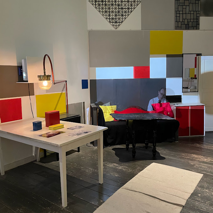 His reconstructed studio in Paris is also featured. This gives insight into the environment in which he created some of his most famous works. The architectural structure is French. But the interior design is distinctly Mondrian.